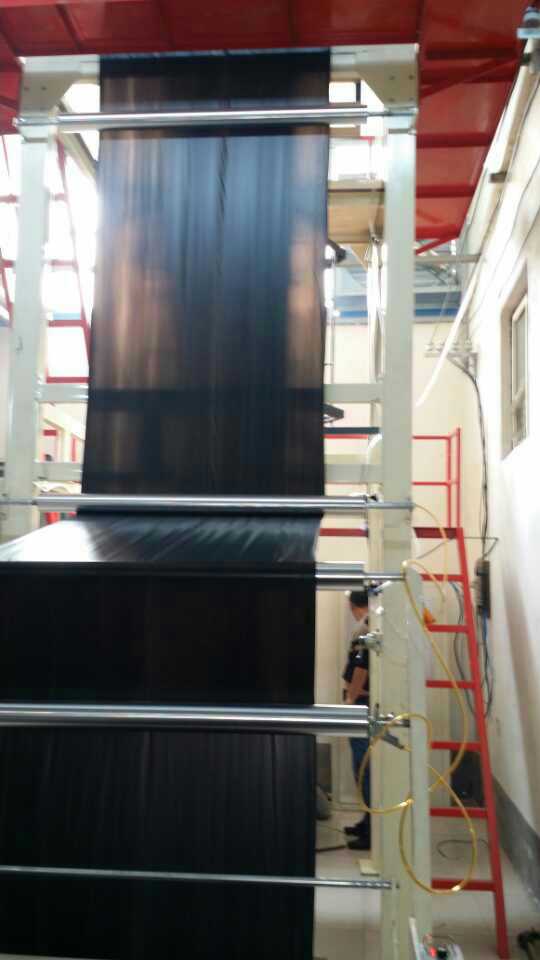 悅星1300型雙層制袋機配合1300型吹膜機,能大幅提升制袋效率,是企業生產的真正良機。圖片為出廠前調試。